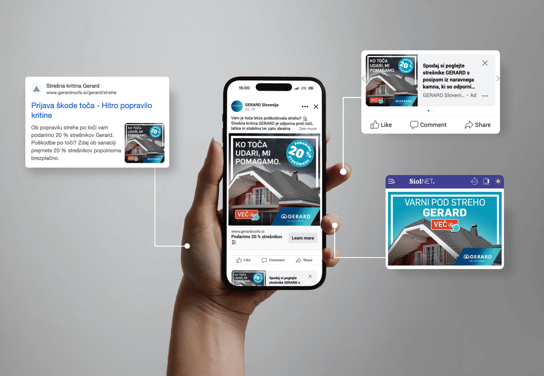 Za blagovno znamko Gerard izvajamo digitalne kampanje, usmerjene v pridobivanje kakovostnih povpraševanj. S kombinacijo ciljnega oglaševanja, relevantnih vsebin in marketinške avtomatizacije pomagamo ustvarjati zanimanje potencialnih strank ter jih postopno voditi do oddaje povpraševanja.