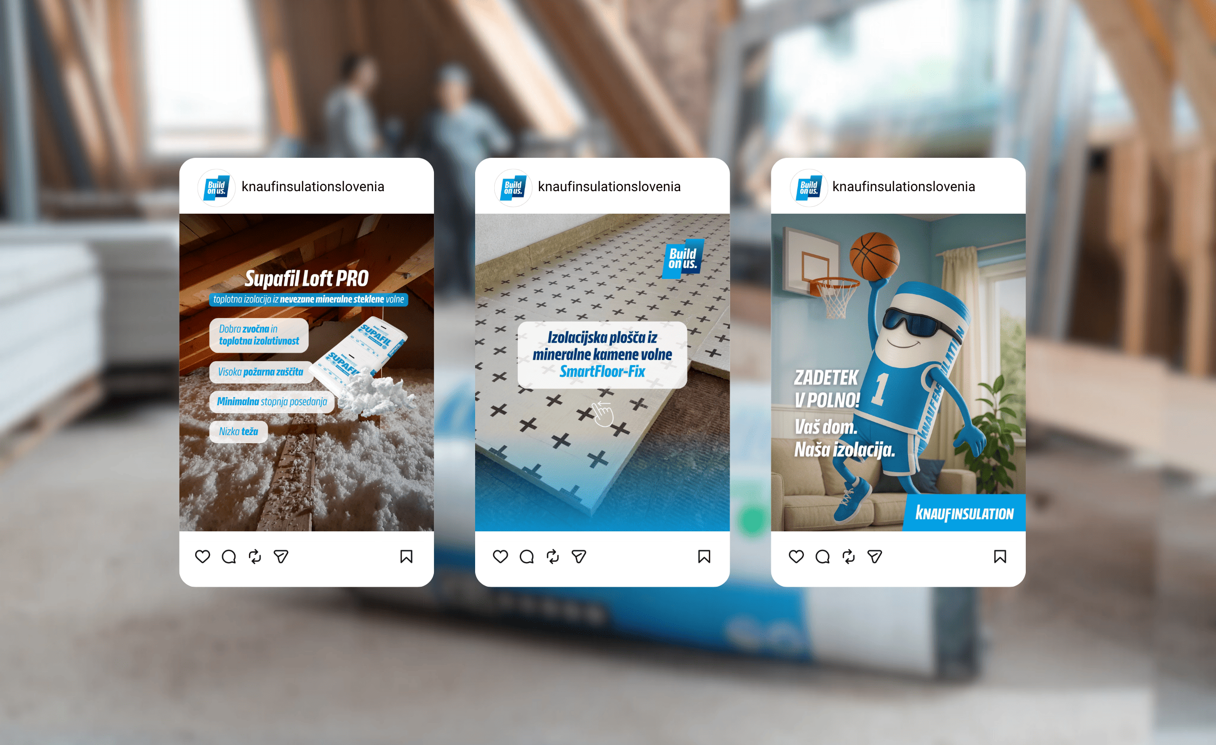 Za Knauf Insulation upravljamo družbena omrežja ter izvajamo digitalne kampanje z vsebinskim poudarkom. Komunikacija temelji na zgodbah o udobju bivanja, trajnosti in zdravem domu ter seveda pomenu ustrezne in zadostne izolacije.